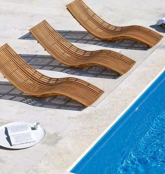Ocelová konstrukce pro lehátko z teakového dřeva – přírodní