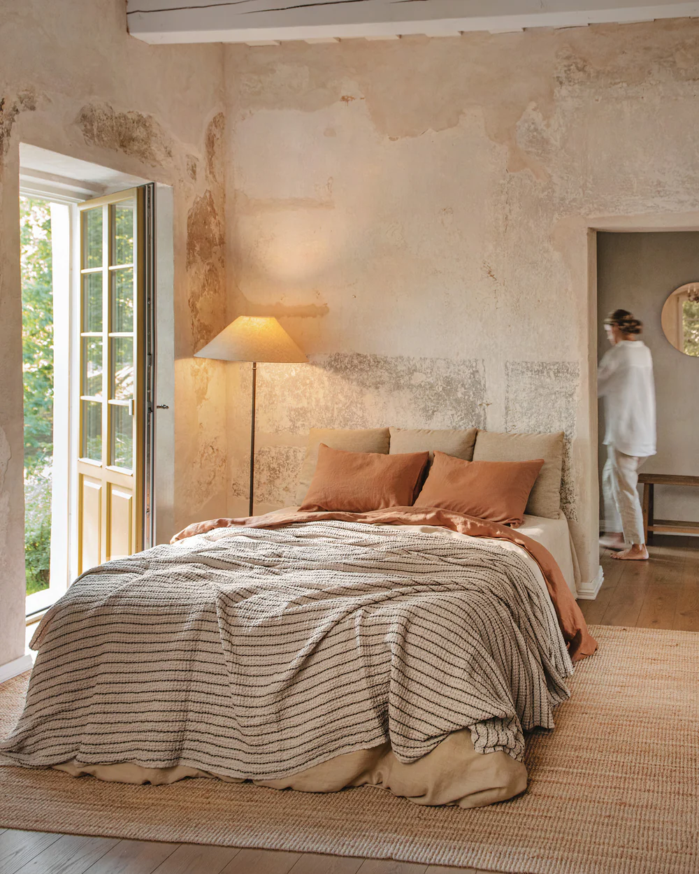 Přehoz přes postel ze směsi lnu (53 %) a bavlny (47 %). Přehoz dodá vaší posteli na útulnosti díky velice příjemné valové vazbě. Přirozené vlastnosti lnu a bavlny vám poskytnou pohodlí po celý rok. Vyberte si velikost.